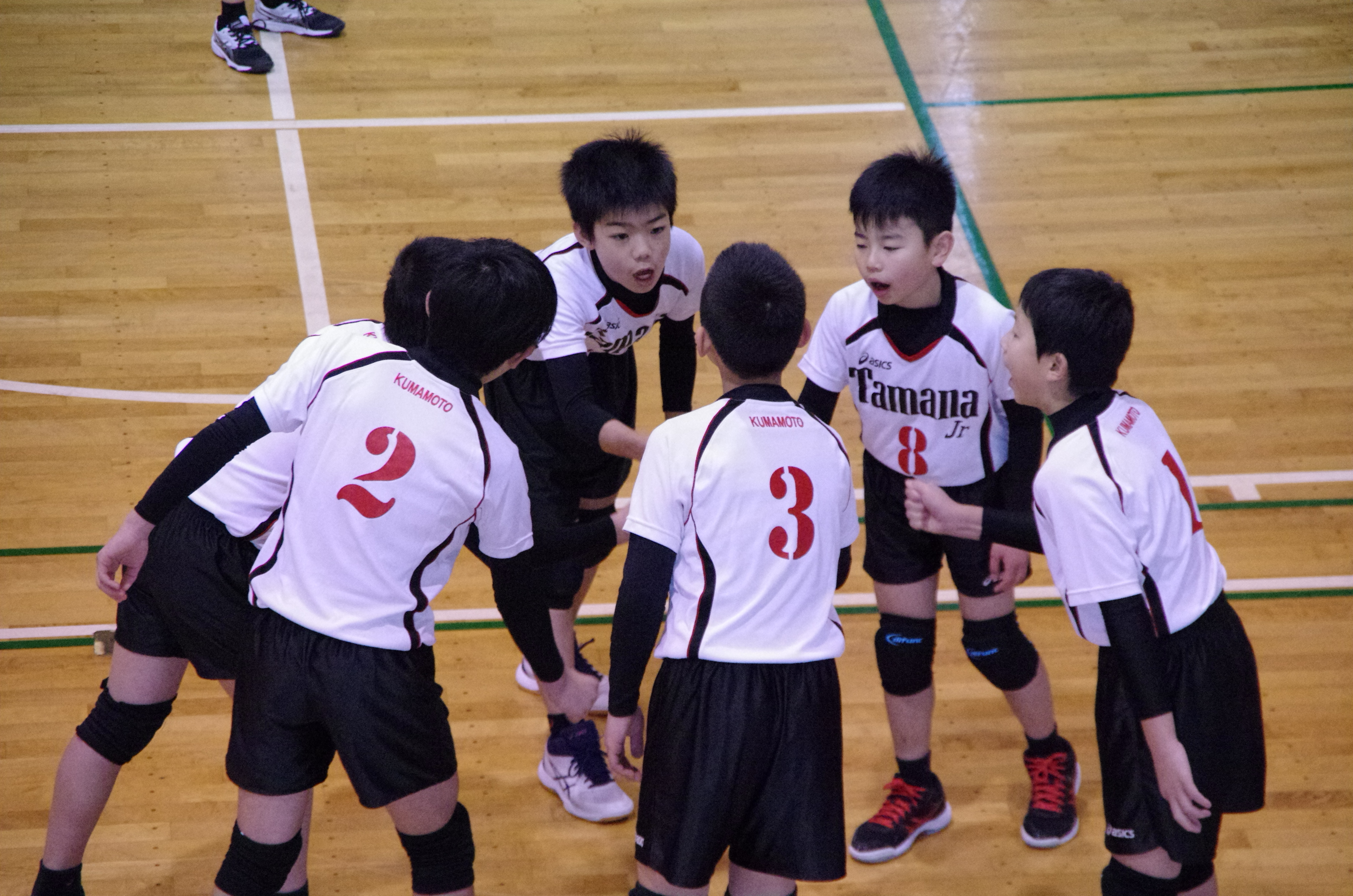 男子の部は七城体育館にて開催されました。玉名ジュニアはリーグ予選からスタート。玉名ジュニアは、南阿蘇・Wing宮地と対戦、二戦とも快勝し、予選リーグ(Dコート)1位通過となりました。